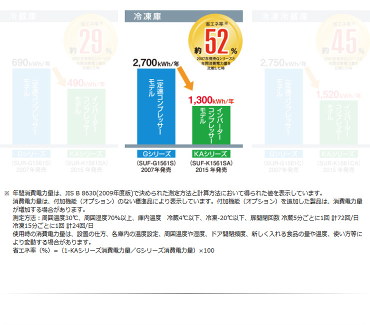 | 消費電力 | [冷却時] 116/116 W [霜取時] 250/250 W ( 50/60Hz ) |
