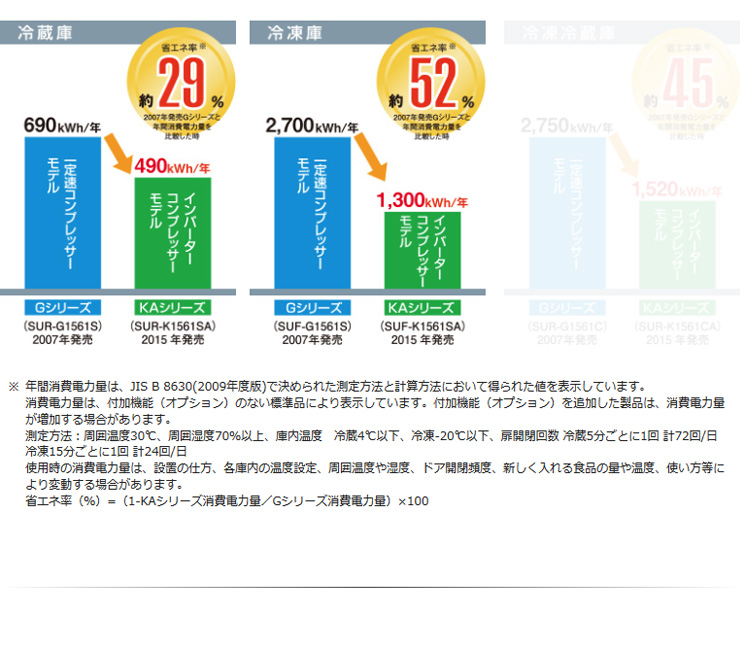 | 消費電力 | [冷却時] 215/215 W [霜取時] 296/296 W ( 50/60Hz ) |