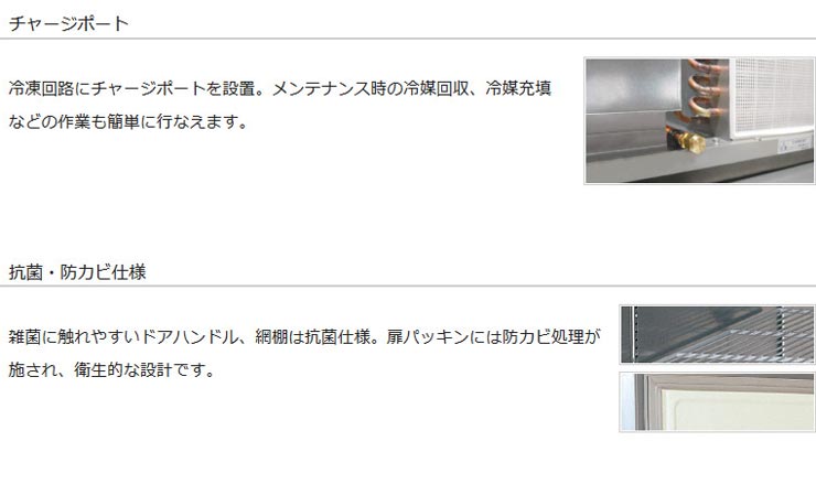 | 材質 | [側面・全面]ステンレス鋼板 / [天面・底面・後面]亜鉛メッキ鋼板 / [内装]ステンレス鋼板 |