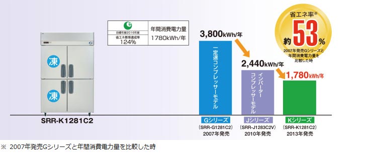 | 内形寸法 | [冷蔵室] 幅1100mm × 奥行700mm × 高さ1450mm [冷凍室] 幅515mm × 奥行700mm × 高さ700mm |